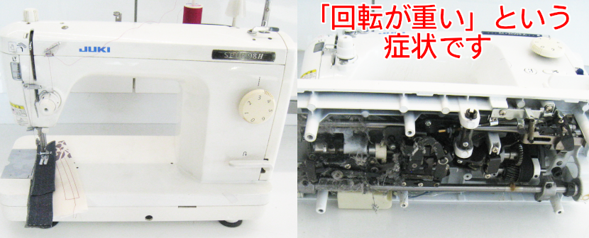 埼玉県さいたま市西区からご来店されたお客様の職業用ミシンで「回転が重い」という症状です。