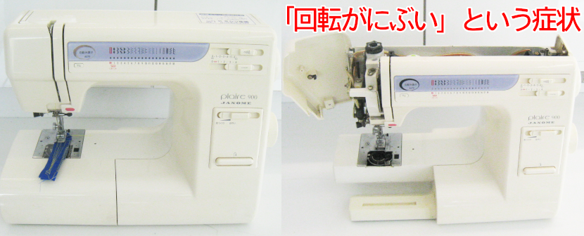 埼玉県朝霞市からご来店されたお客様の電子ミシンで「回転がにぶい・下糸巻きができない」という症状です。