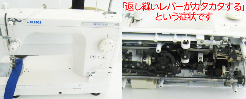 埼玉県さいたま市大宮区からご来店されたお客様の職業用ミシンで「返し縫いレバーがカタカタする」という症状です。