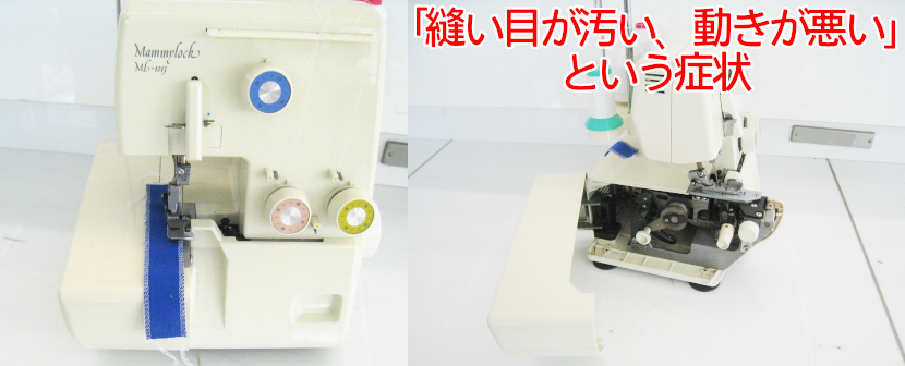 埼玉県さいたま市南区からご来店されたお客様の3本糸ロックミシンで「縫い目が汚い、動きが悪い」という症状です。