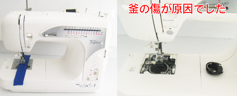 釜の傷が原因なので、部分的分解・調整でスムーズに縫えるように修理させていただきました。