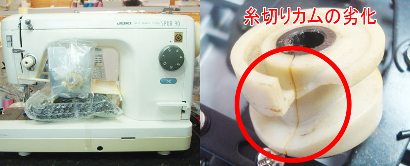 糸切りカムの劣化が原因なので、オーバーホール・部品交換で修理させていただきました。