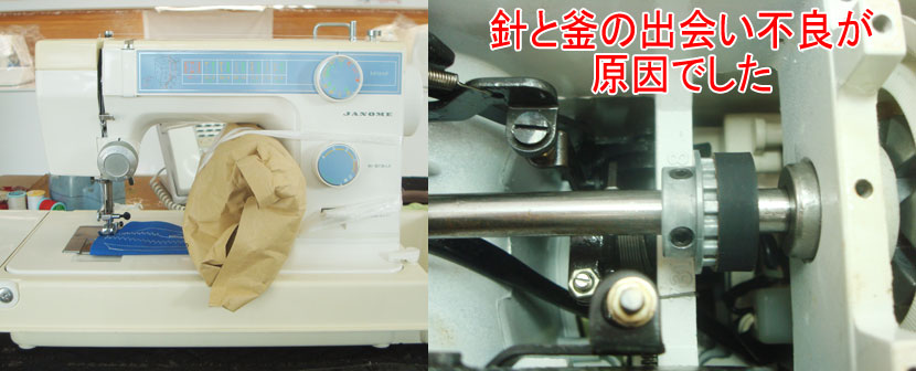 針と釜の出会い不良が原因なので、オーバーホール・調整で修理させていただきました。