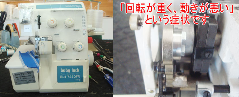 ミシンの宅配修理で集荷させていただいたお客様の4本糸ロックミシンで「回転が重く、動きが悪い」という症状です。