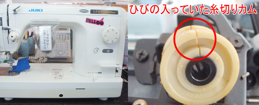 各部点検の上、ひびの入っていた糸切りカムを交換して修理させていただきました。