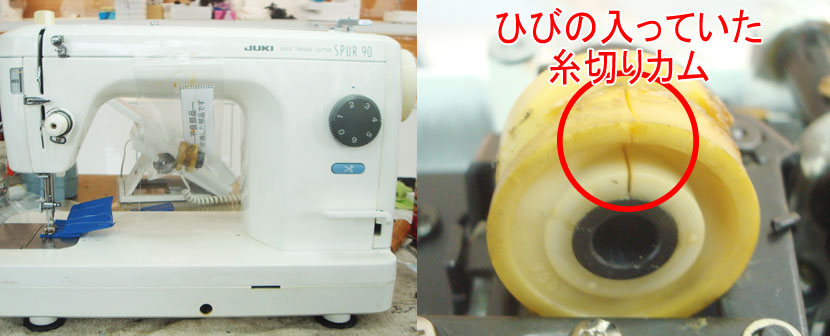 各部点検の上、ひびの入っていた糸切りカムを交換修理させていただきました。
