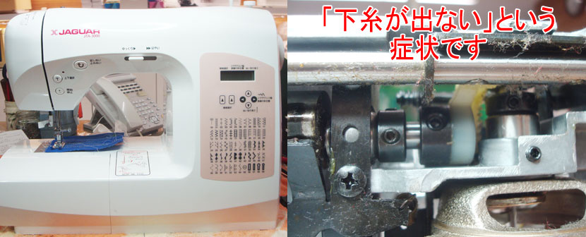 ミシンの宅配修理で集荷させていただいたお客様のコンピュータミシンで「下糸が出ない」という症状です。