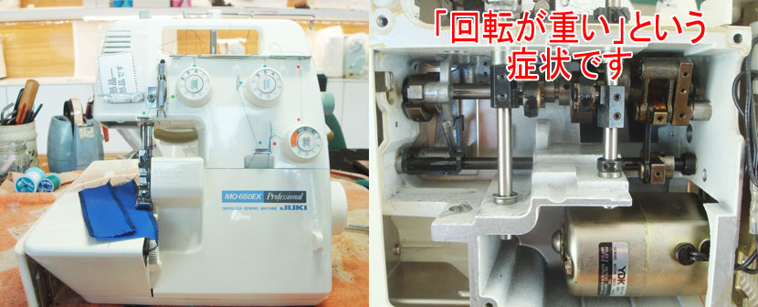 ミシンの宅配修理で集荷させていただいたお客様の3本糸ロックミシンで「回転が重い」という症状です。