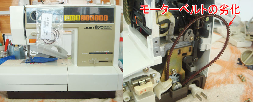 経年の固着及びモーターベルトの劣化が原因なので、オーバーホール・部品交換で修理させていただきました。