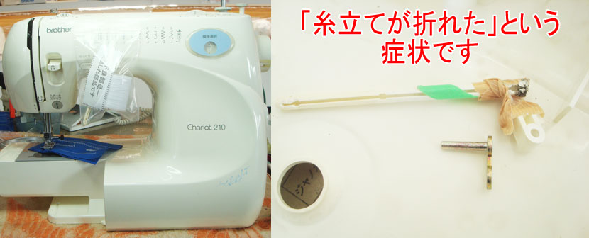 ミシンの宅配修理で集荷させていただいたお客様の電子ミシンで「糸立てが折れた」という症状です。