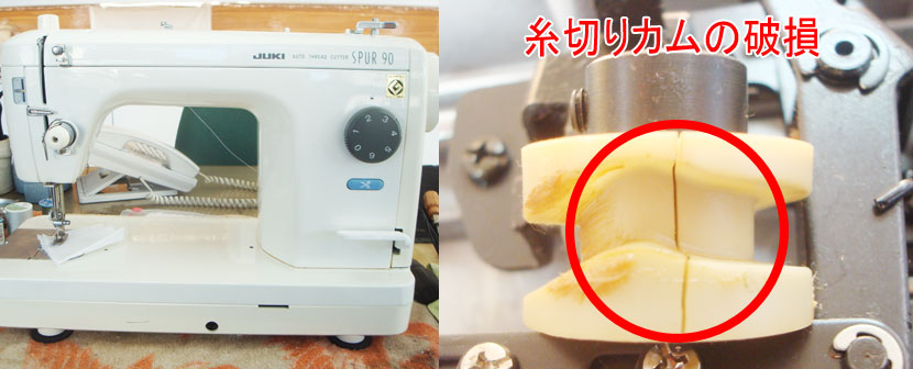 各部点検の上、破損していた糸切りカムを交換修理させていただきました。