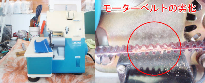 モーターベルトの劣化とメンテナンス不足が原因なので、オーバーホール・ベルト交換で修理させていただきました。