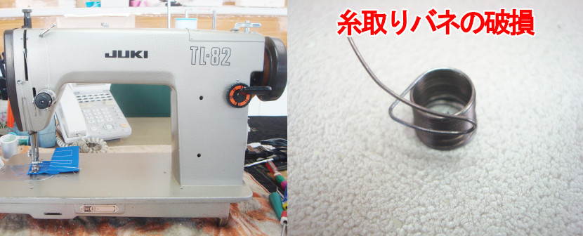 糸取りバネの破損及びメンテナンス不足が原因なので、オーバーホール・部品交換で修理させていただきました。