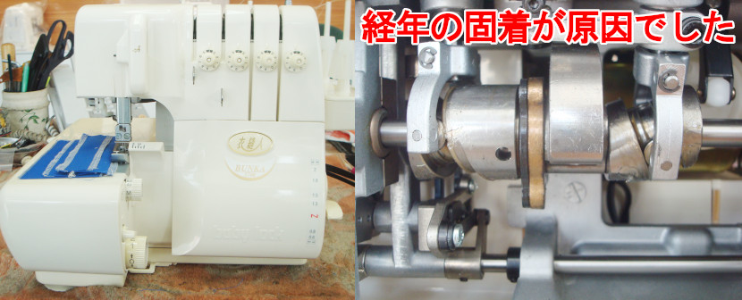 ミシンの宅配修理で集荷させていただいたお客様の4本糸ロックミシンで「音はするけど動かない」という症状です。