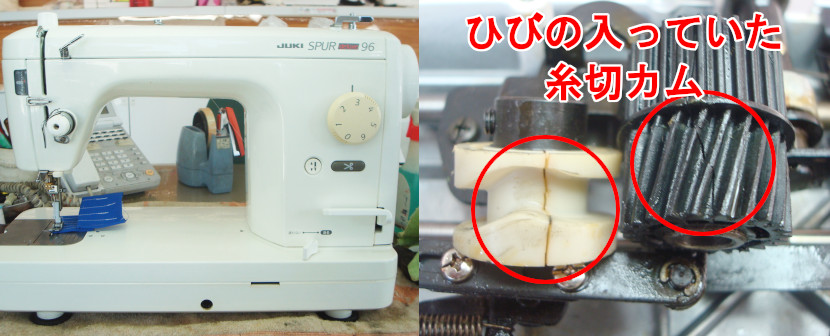 各部点検の上、ひびの入っていた糸切カムを交換修理させていただきました。