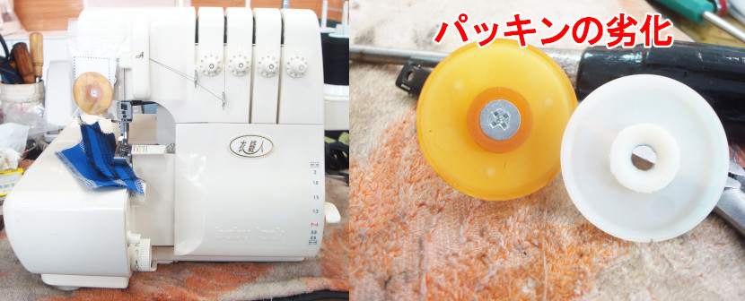 ミシンの宅配修理で集荷させていただいたお客様の4本糸ロックミシンで「エアー糸通しができない」という症状です。