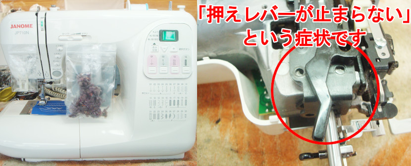 ミシンの宅配修理で集荷させていただいたお客様のコンピュータミシンで「押えレバーが止まらない」という症状です。