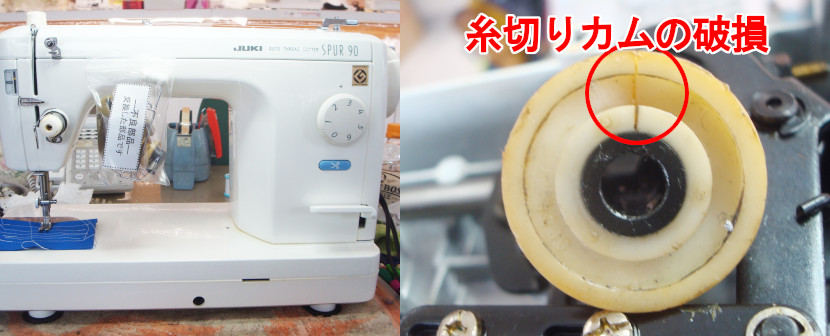 各部点検の上、糸切りカムを交換修理させていただきました。