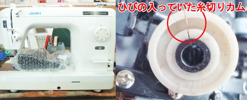 各点検の上、ひびの入っていた糸切りカムを交換修理させていただきました。