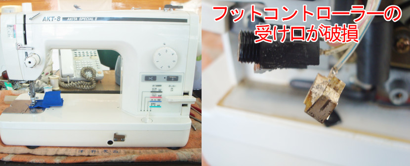 フットコントローラーの受け口が破損していたことが原因なので、部分的分解・部品交換で修理させていただきました。