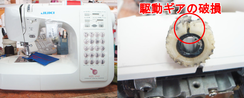 ミシンの宅配修理で集荷させていただいたお客様のコンピュータミシンで「針が釜にあたる」という症状です。