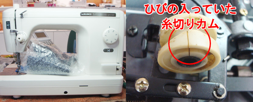 各部点検の上、ひびの入っていた糸切りカムを交換修理させていただきました。