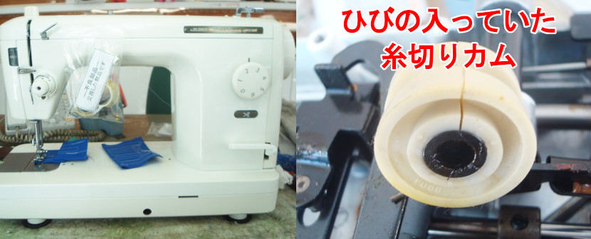 各部点検の上、ひびの入っていた糸切りカムを交換修理させていただきました。