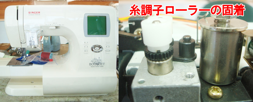 糸調子ローラーの固着が原因なので、オーバーホール・内外部クリーンアップで修理させていただきました。