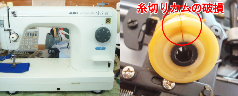 各部点検の上、破損していた糸切りカムを交換修理させていただきました。