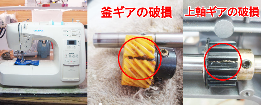 釜ギア及び上軸ギアの破損が原因なので、オーバーホール・部品交換で修理させていただきました。