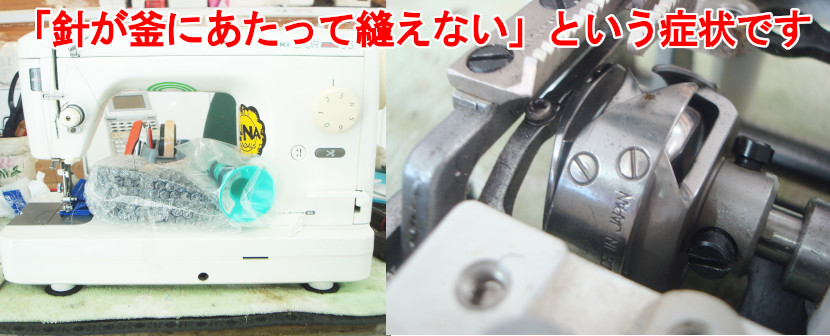ミシンの宅配修理で集荷させていただいたお客様の職業用ミシンで「針が釜にあたって縫えない」という症状です。