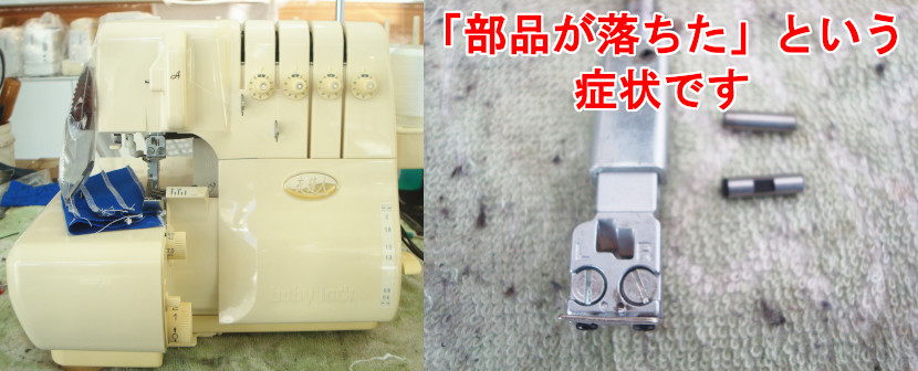 ミシンの宅配修理で集荷させていただいたお客様の4本糸ロックミシンで「部品が落ちた」という症状です。
