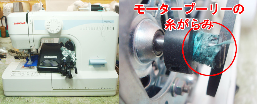 モータープーリーの糸がらみが原因なので、オーバーホール・内外部クリーンアップで修理させていただきました。