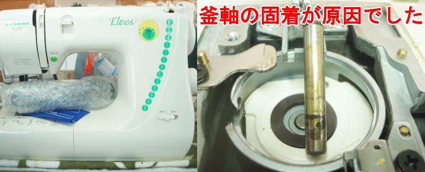 埼玉県上尾市からご来店されたお客様のコンパクトミシンで「はずみ車が重い」という症状です。
