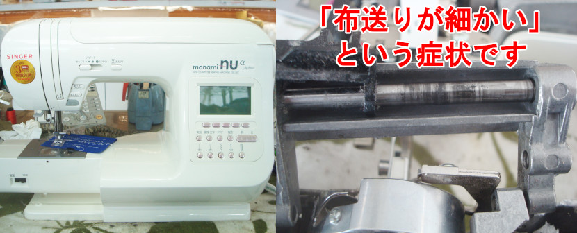 埼玉県朝霞市からご来店されたお客様のコンピュータミシンで「布送りが細かい」という症状です。