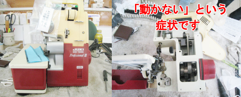 ミシンの宅配修理で集荷させていただいたお客様の2本糸ロックミシンで「動かない」という症状です。