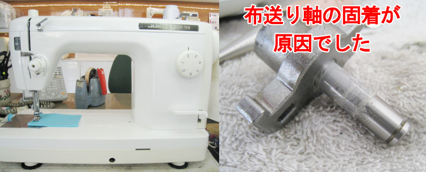 布送り軸の固着が原因なので、オーバーホール・内外部クリーンアップで修理させていただきました。