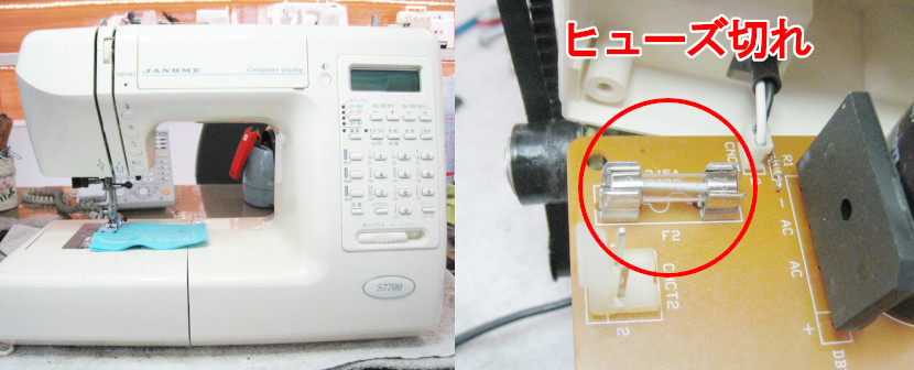 ミシンの宅配修理で集荷させていただいたお客様のコンピュータミシンで「電源が入らない」という症状です。