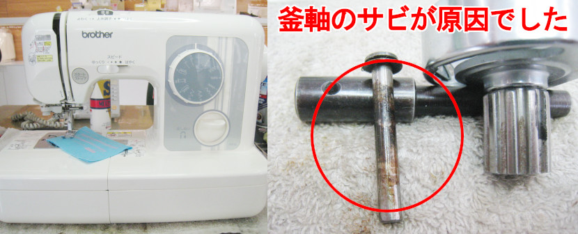 釜軸のサビが原因なので、部分的分解・調整で修理させていただきました。