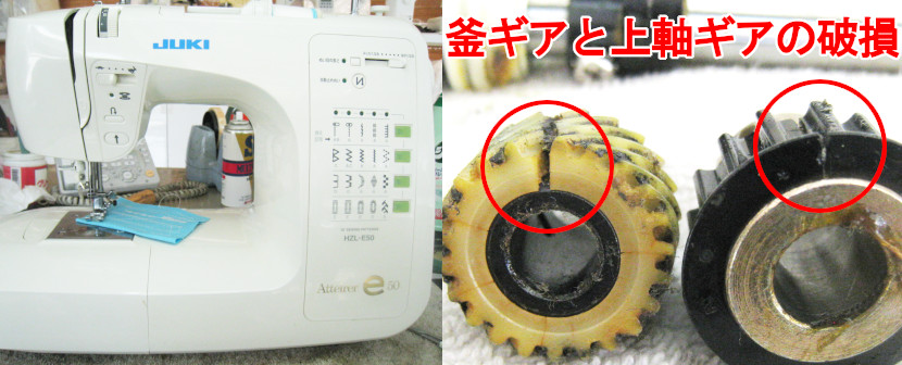 釜ギアと上軸ギアの破損が原因なので、オーバーホール・部品交換で修理させていただきました。