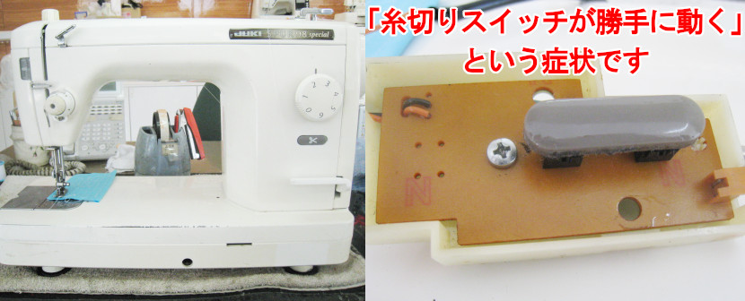 ミシンの宅配修理で集荷させていただいたお客様の職業用ミシンで「糸切りスイッチが勝手に動く」という症状です。