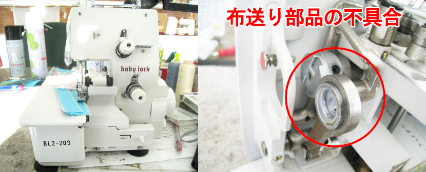 布送り部品の不具合が原因なので、オーバーホール・部品交換で修理させていただきました。