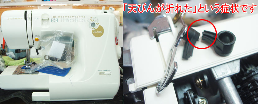 東京都板橋区からご来店されたお客様のコンパクトミシンで「天びんが折れた」という症状です。