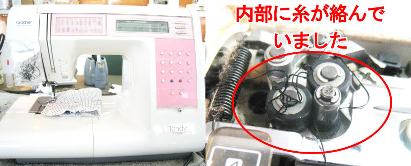 ミシンの宅配修理で集荷させていただいたお客様のコンピュータミシンで「糸が切れる」という症状です。