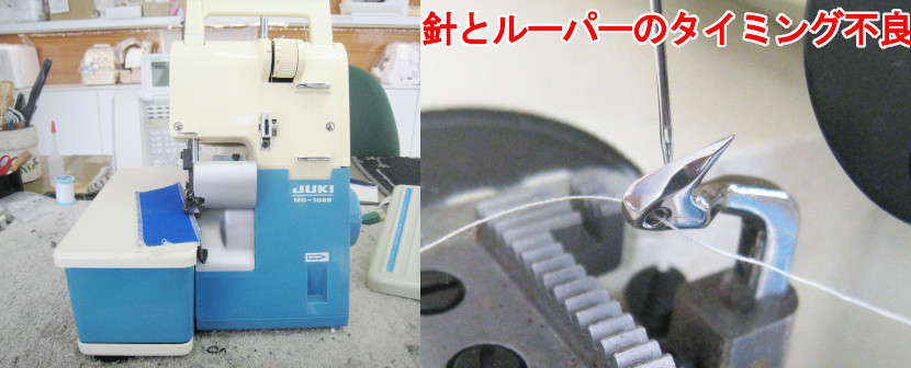 針とルーパーのタイミング不良が原因なので、オーバーホール・各部調整で修理させていただきました。