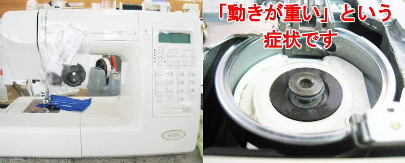 ミシンの宅配修理で集荷させていただいたお客様のコンピュータミシンで「動きが重い」という症状です。