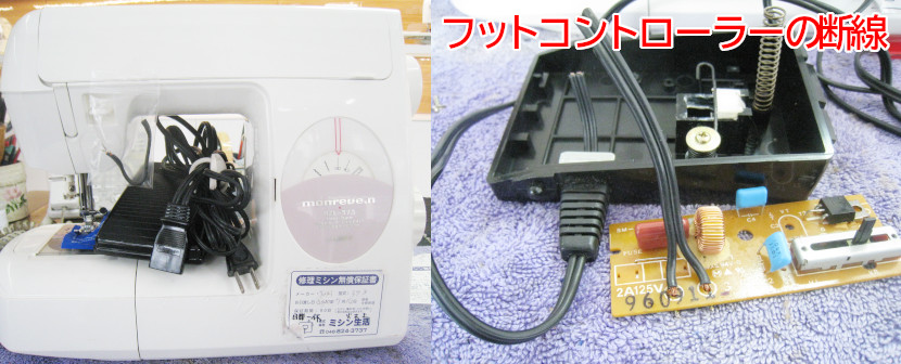 フットコントローラーの断線が原因なので、分解修理させていただきました。