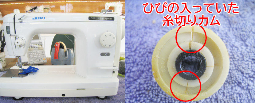 各部点検の上、ひびの入っていた糸切りカムを交換修理させていただきました。