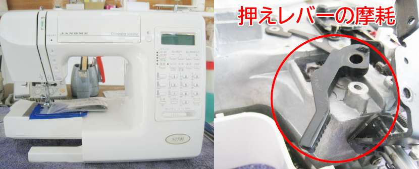 押えレバーの摩耗が原因なので、部分的分解・部品交換で修理させていただきました。
