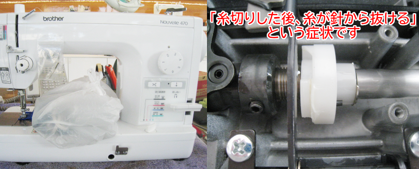 埼玉県さいたま市岩槻区からご来店されたお客様の職業用ミシンで「糸切りした後、糸が針から抜ける」という症状です。